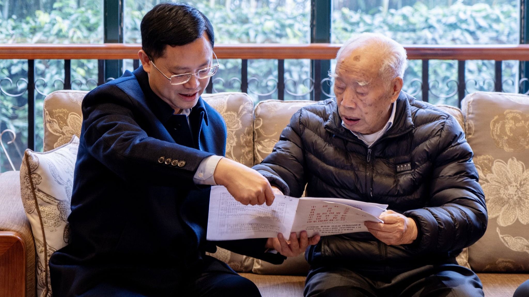 12月22日上午,峨眉山市市委副书记、市人民政府市长,峨眉山景区管委会主任陈林强带领市教育局、编办、自然资源局及黄湾镇党委负责同志来校看望慰问沈志云院士,校长助理,峨眉校区党工委书记、管委会主任宋新,党工委常务副书记郑简平,管委会副主任陈诗伟陪同慰问。