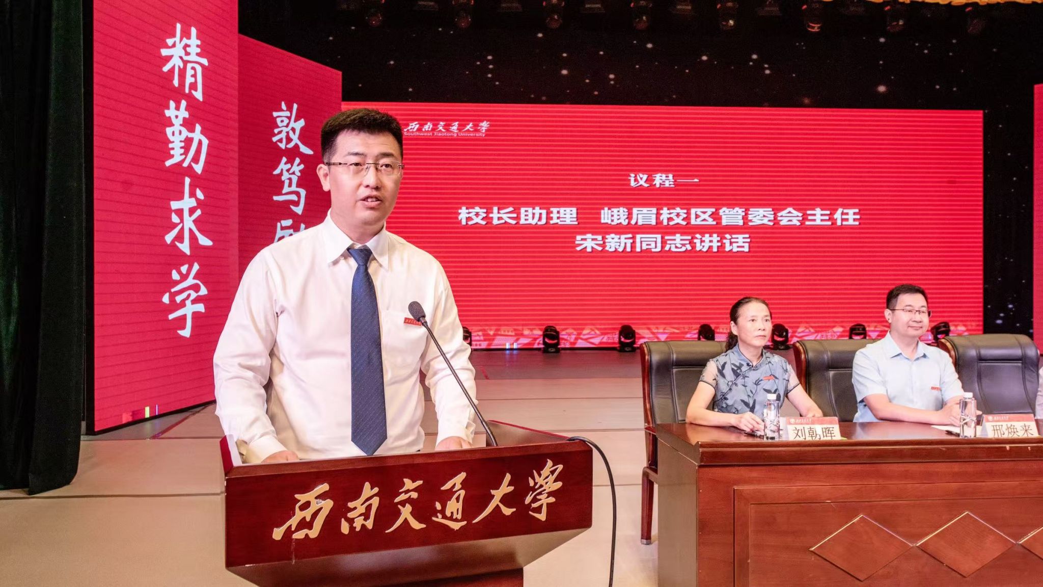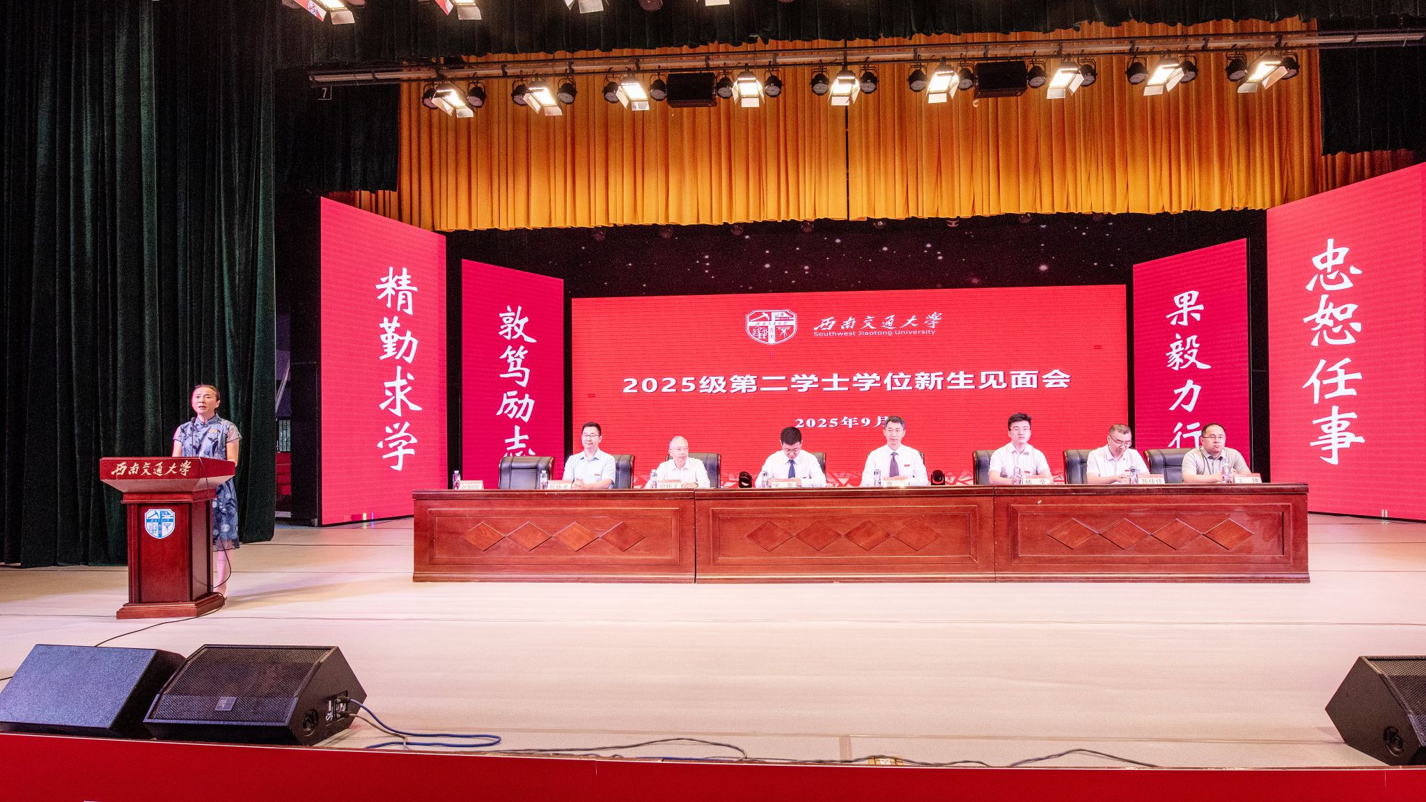 2025年9月7日上午,william威廉中文官网,williamhill英国官网2025级第二学士学位新生见面会在明诚堂隆重举行。学校校长助理、峨眉校区管委会主任宋新,校区全体领导班子成员,以及第二学士学位各专业学院领导与教师代表共同出席见面会。会议由峨眉校区管委会常务副主任刘朝晖主持。