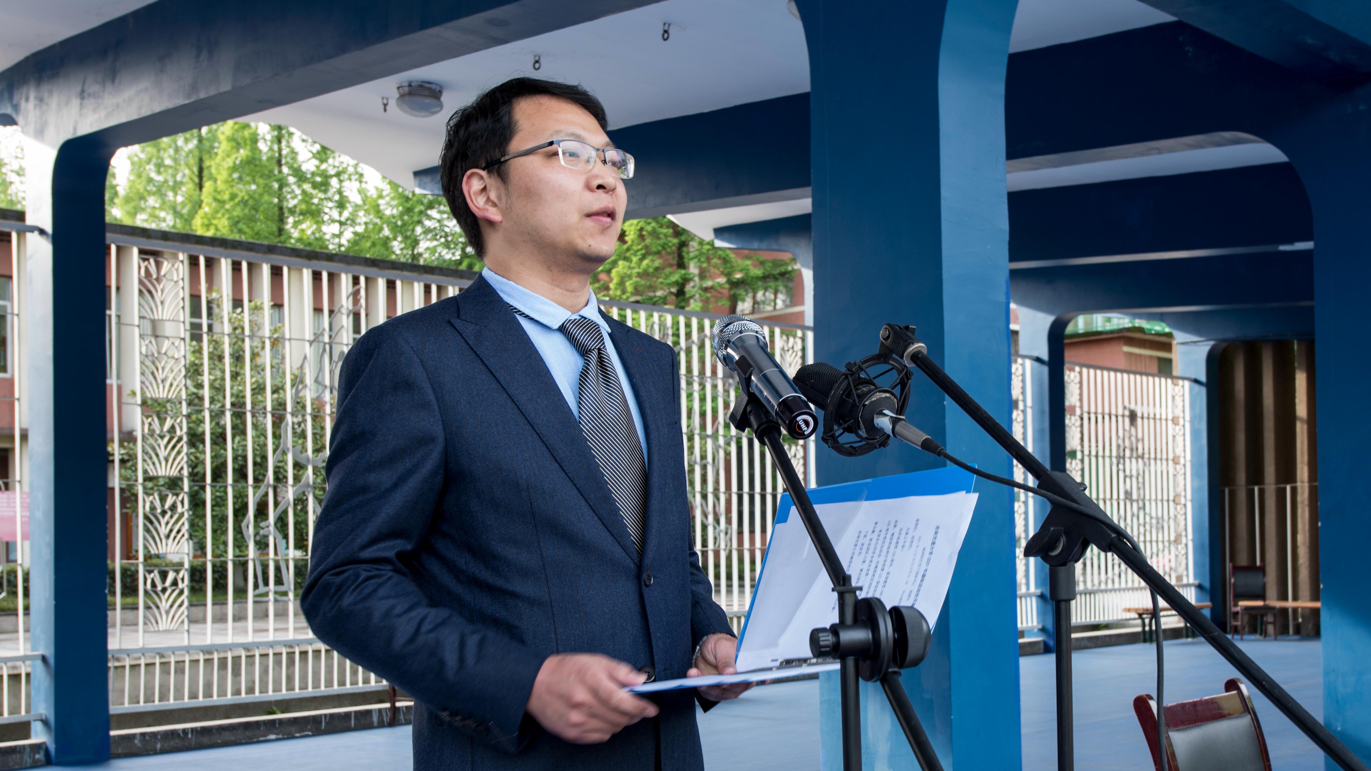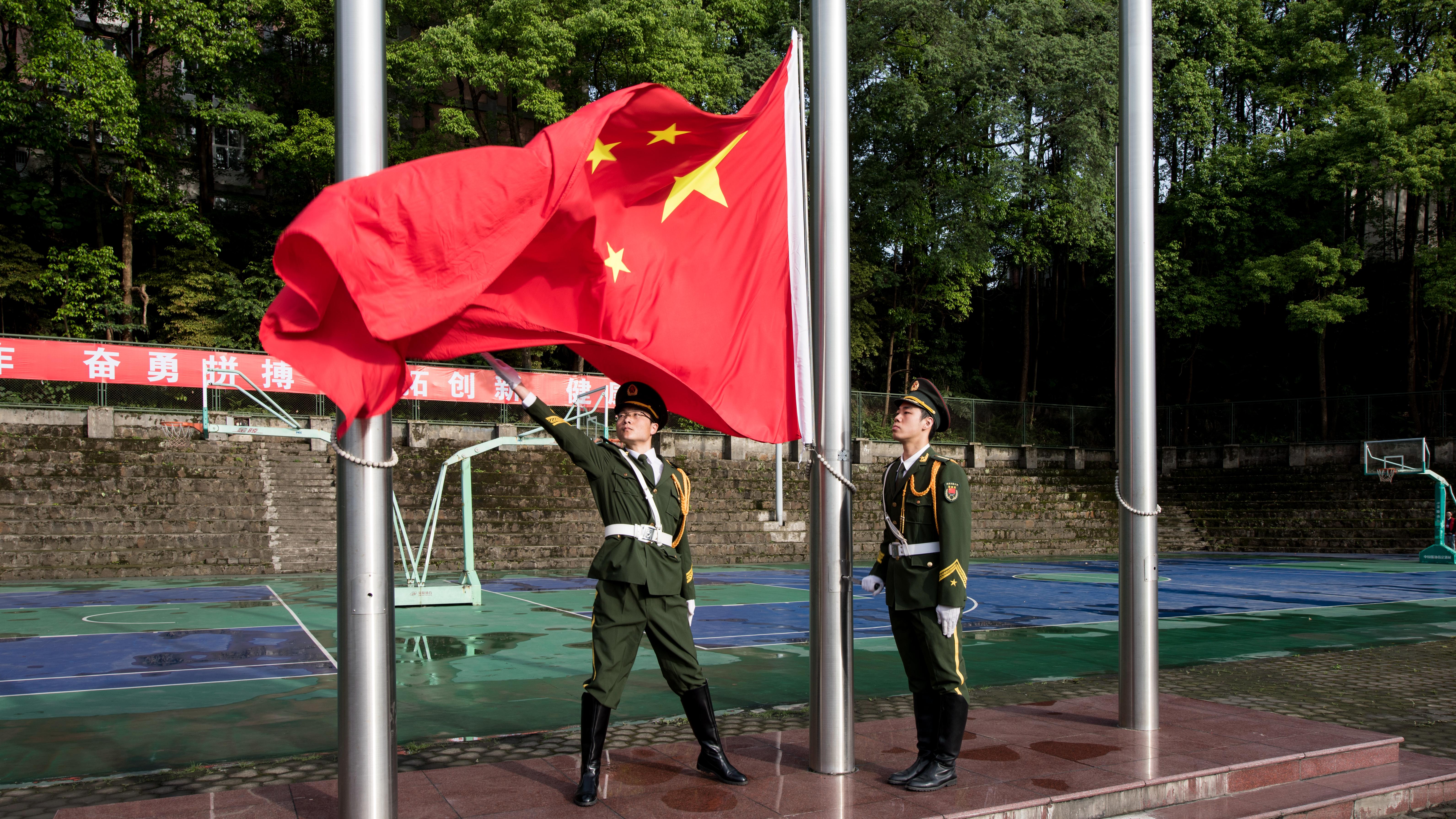 8:30,全体师生起立,升国旗,奏唱中华人民共和国国歌。