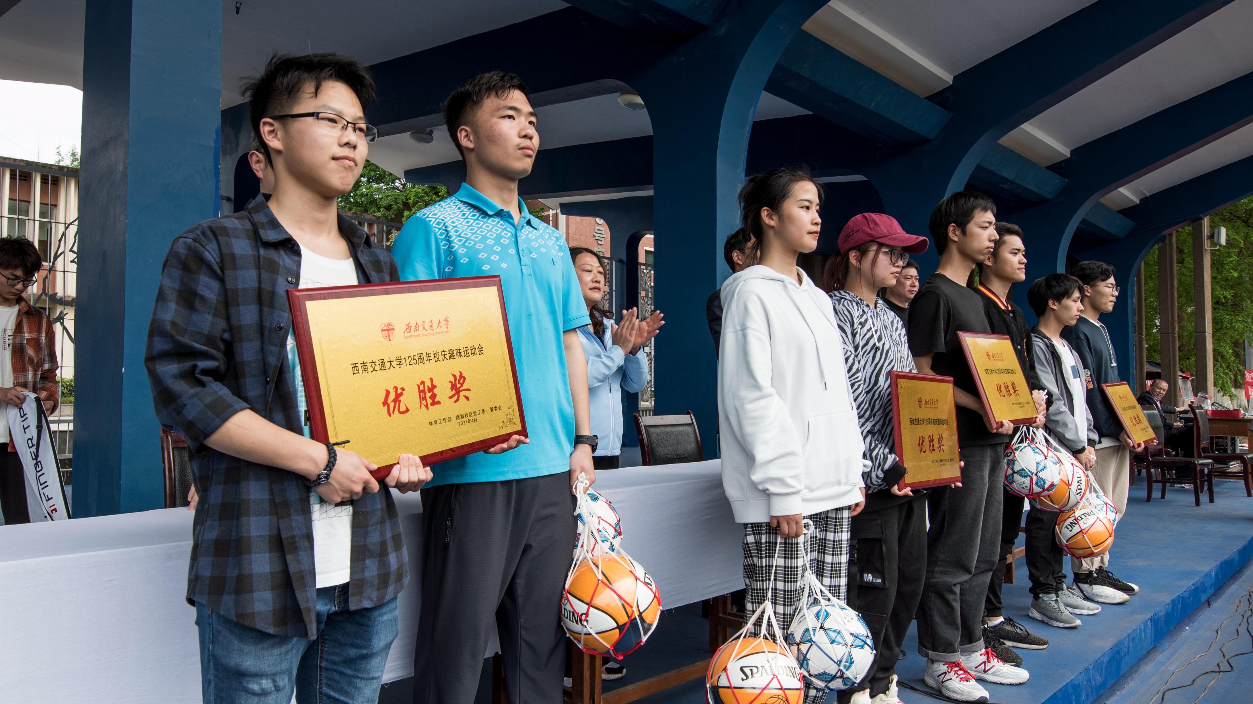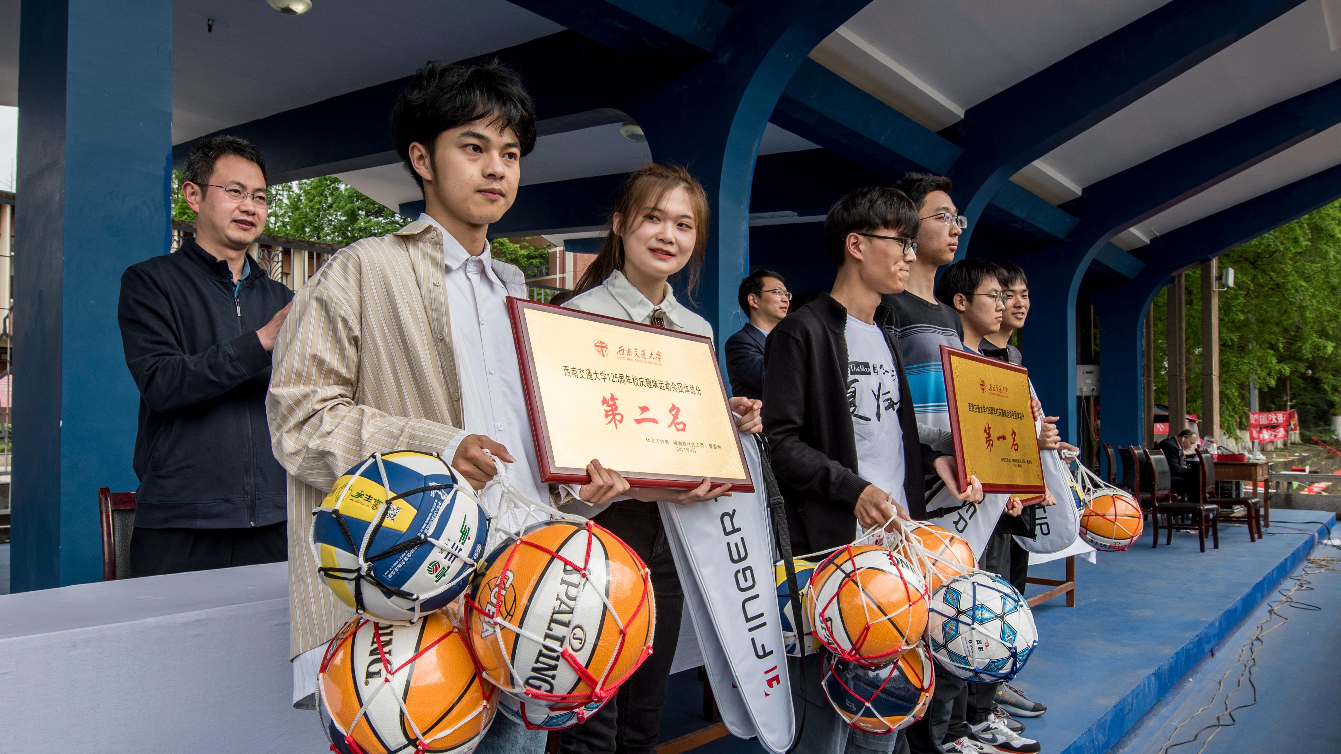 总裁判长、体育工作部副主任张春燕宣布比赛成绩:土木工程学院获得团体总分第一名,交通运输与物流学院获得团体总分第二名,地球科学与环境工程学院获得团体总分第三名。2020级安全工程2班获得拔河比赛第一名,2020级自动化4班获得穿梭接力比赛第一名。