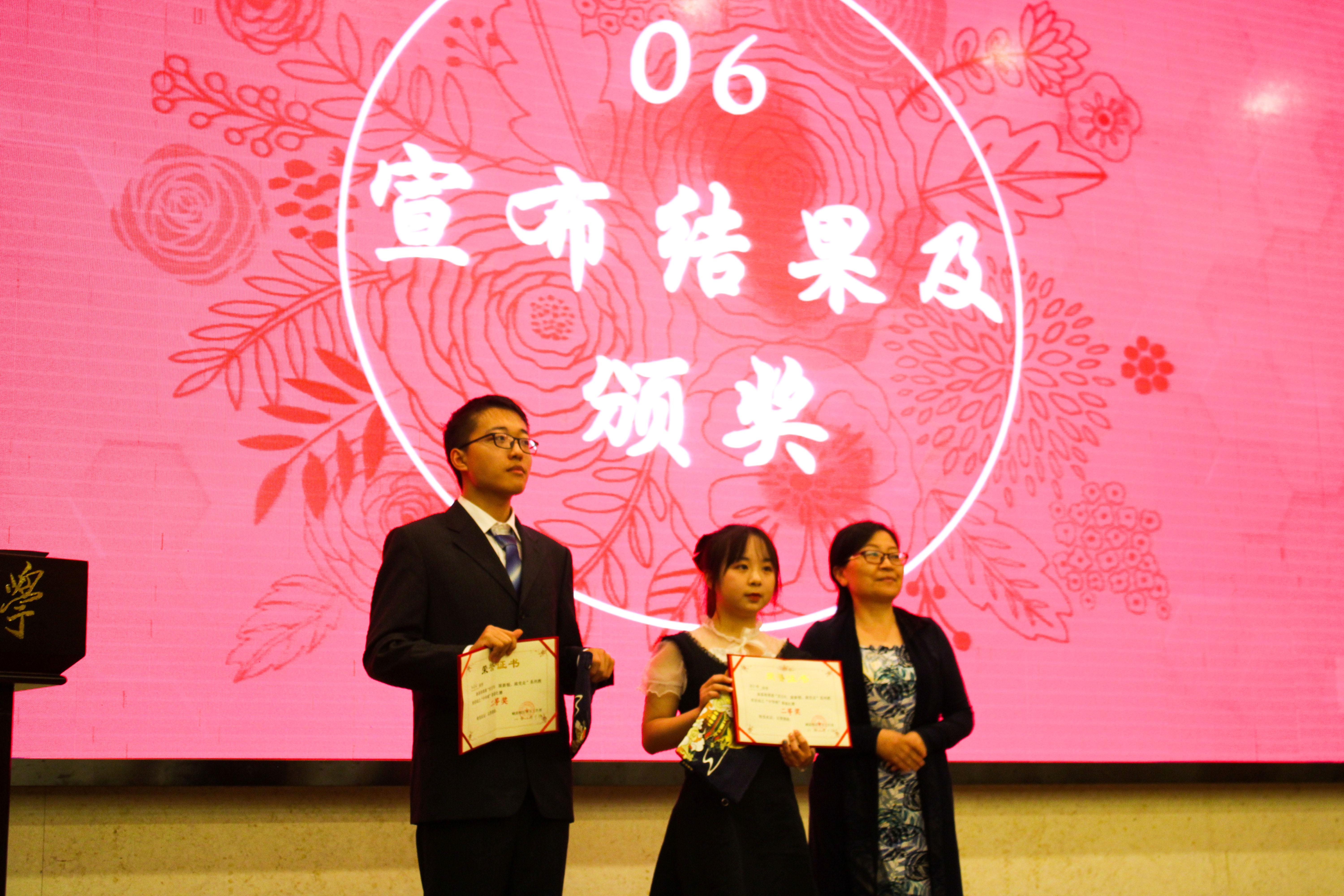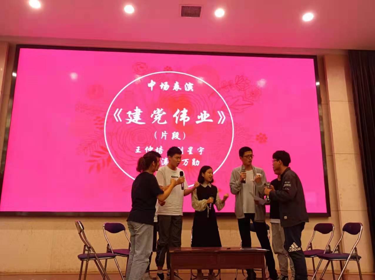 话剧队同学带来了《建党伟业》节选片段,当台上演绎到嘉庆湖上共产党人唱起《国际歌》时,台上台下的师生一同齐唱,爱国情绪高涨。经过激烈的角逐,黄星月同学获得一等奖,魏新鹏同学、杨诺唏同学获得二等奖,袁向前同学、何思露同学、韩嘉蕊同学、滕梓欣同学、杨俊同学获得三等奖。