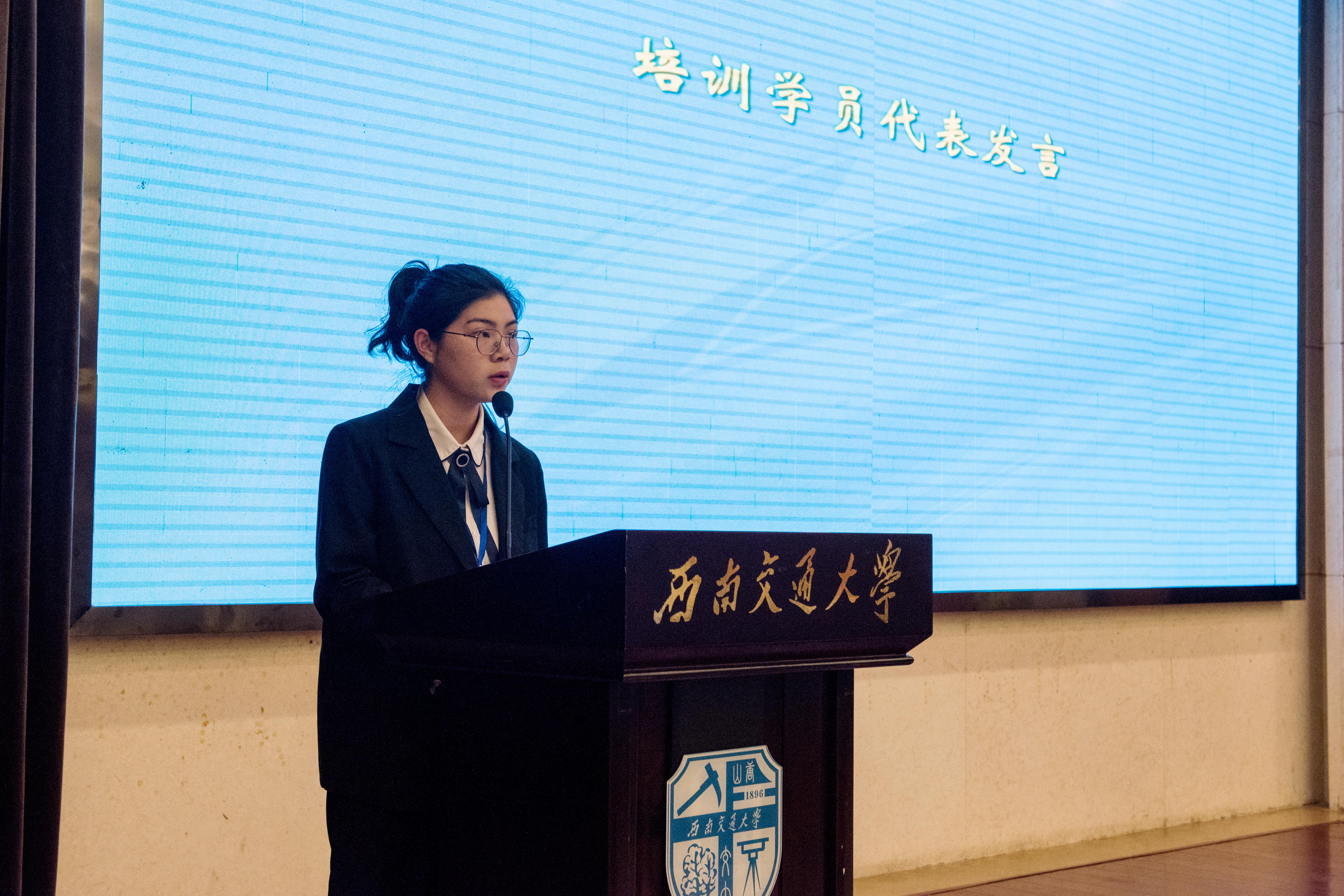 乐山师范学院2018级学生卢佳楠代表全体参训学员发言。卢佳楠对国家、社会和学校提供就业能力培训表示衷心感谢,同时也代表全体学员表达了一定会珍惜本次集中培训学习的机会,提升求职就业技能,学以致用,回报国家和社会。