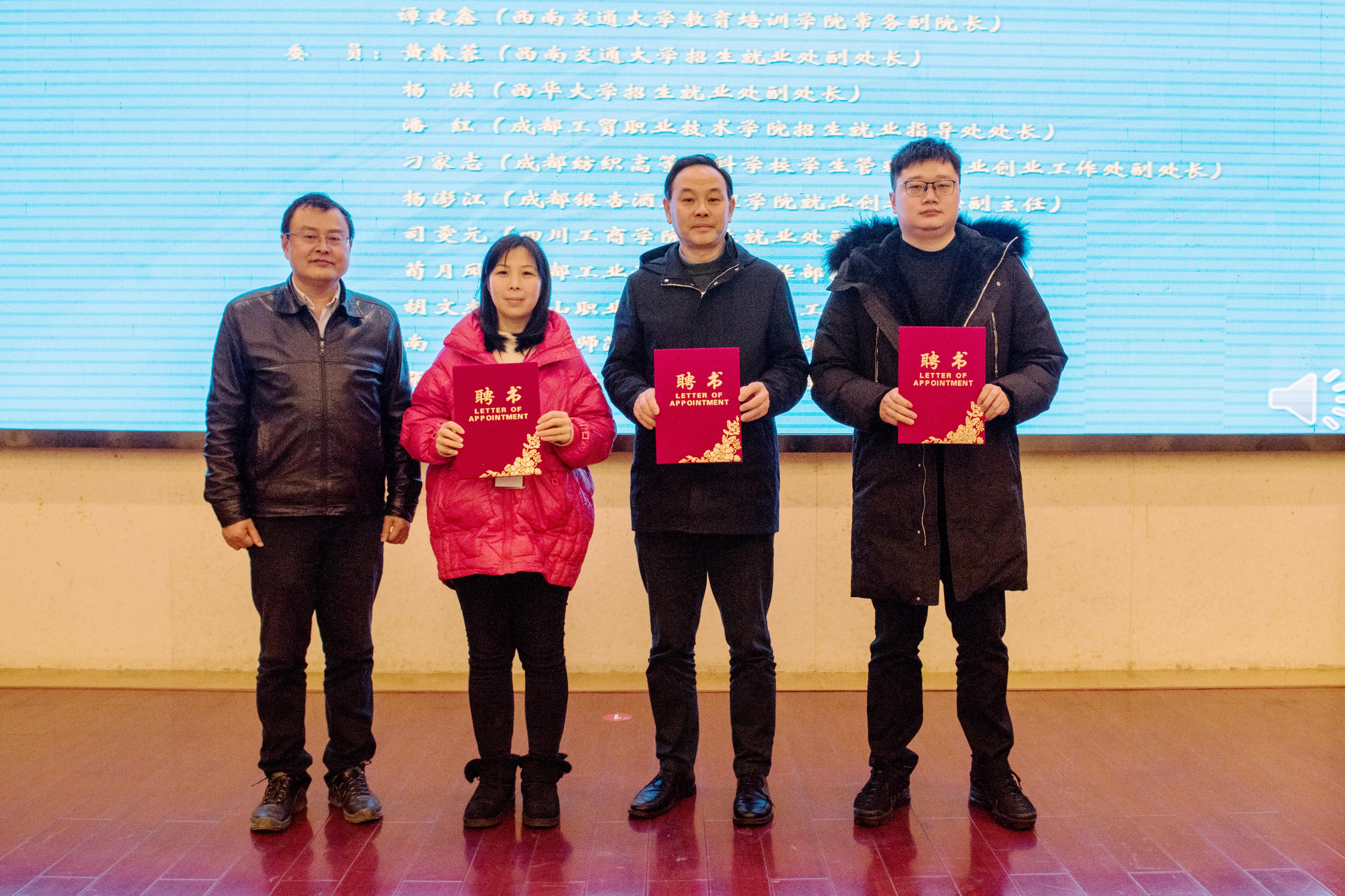 为了更好地融合各方力量,全力做好毕业生就业能力培训工作,基地还专门成立了工作委员会,将相关高校就业工作部门的负责同志聘为委员。开班仪式上,谭建鑫宣读了基地委员会名单并为乐山片区委员颁发聘书。此外,招生就业处副处长黄春蓉为班主任颁发了聘书。