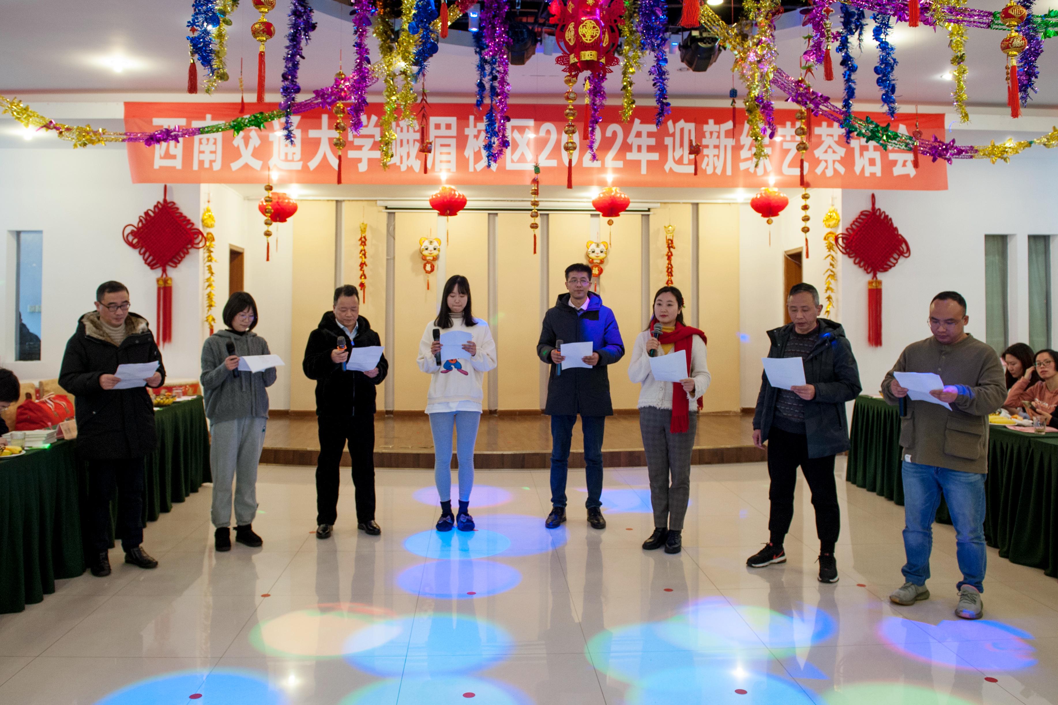 竢实扬华,交通强国,西南交大立新功;自强不息,砥砺前行,峨眉校区再出发!12月29日,峨眉校区2022年迎新综艺茶话会在校区科技流中心圆满举行。