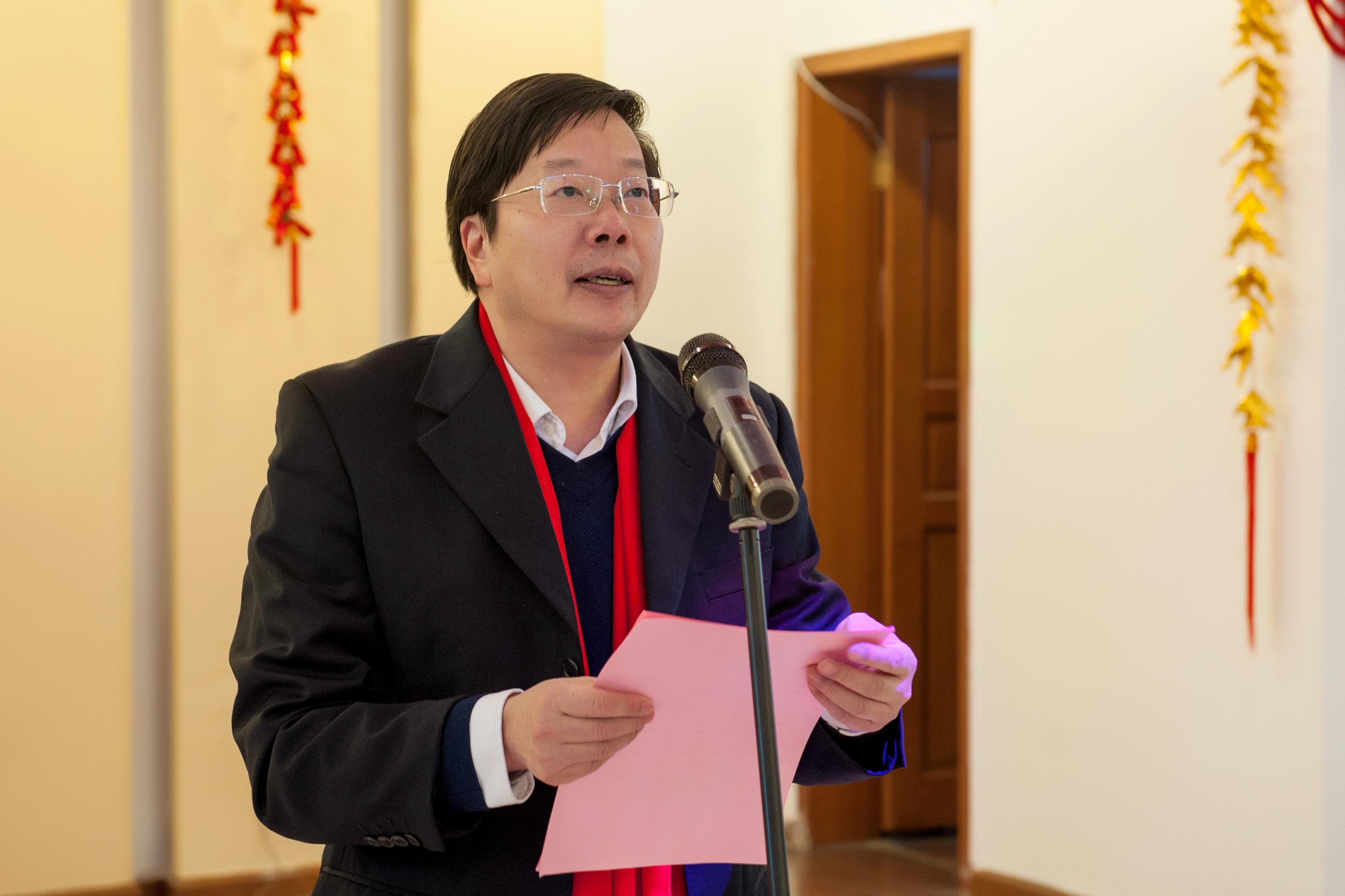 学校党委副书记沈火明为茶话会致辞。他代表学校党委王顺洪书记、杨丹校长和峨眉校区党工委管委会、教育培训学院向大家致以节日问候和新年祝福。