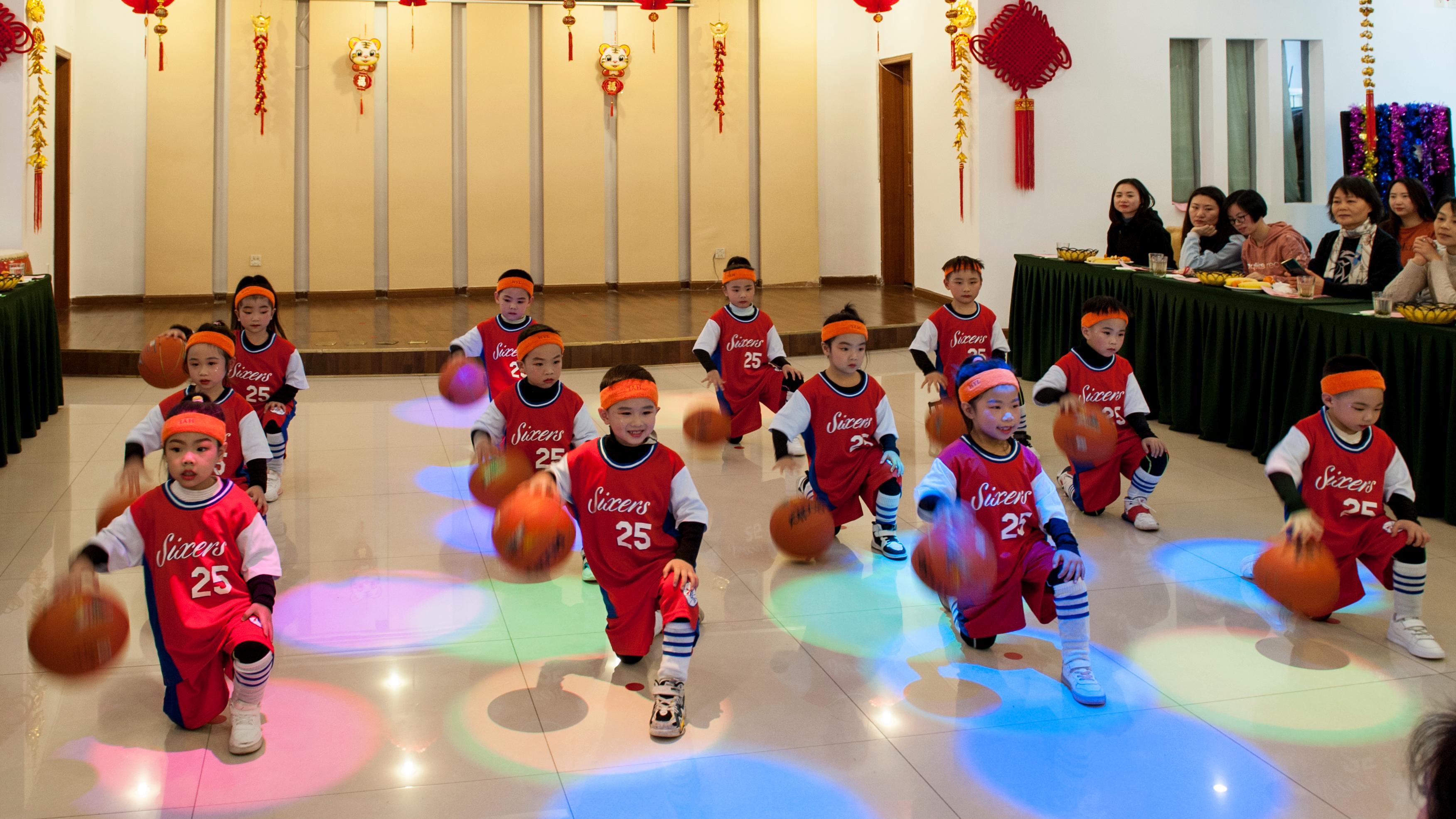 幼儿园小朋友的舞蹈《篮球宝贝》跳出了天真烂漫。