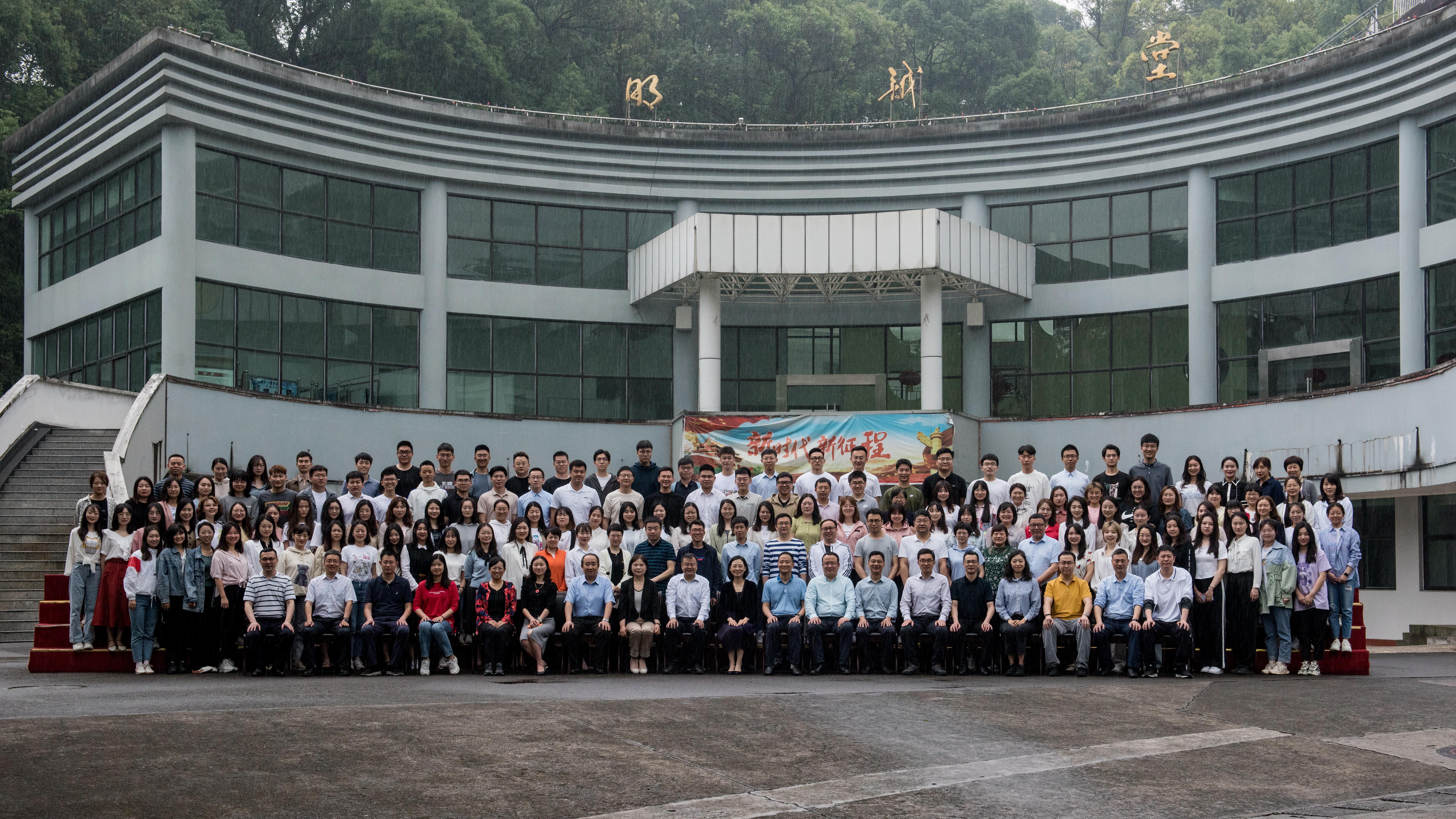 开班仪式后,全体辅导员同参会领导在明诚堂前合影留念。