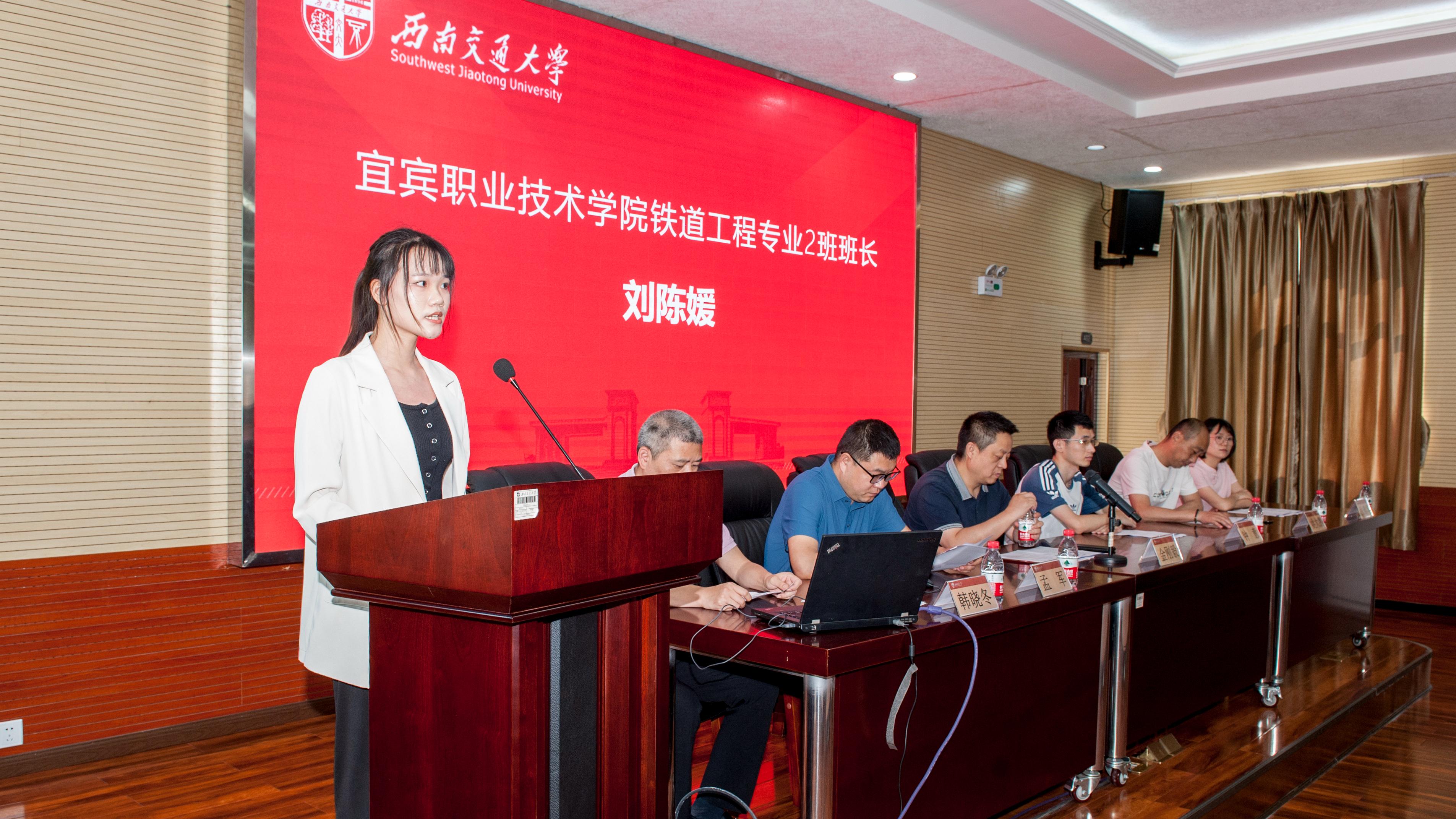 宜宾职业技术学院铁道12002班刘陈媛同学代表培训学生发言。