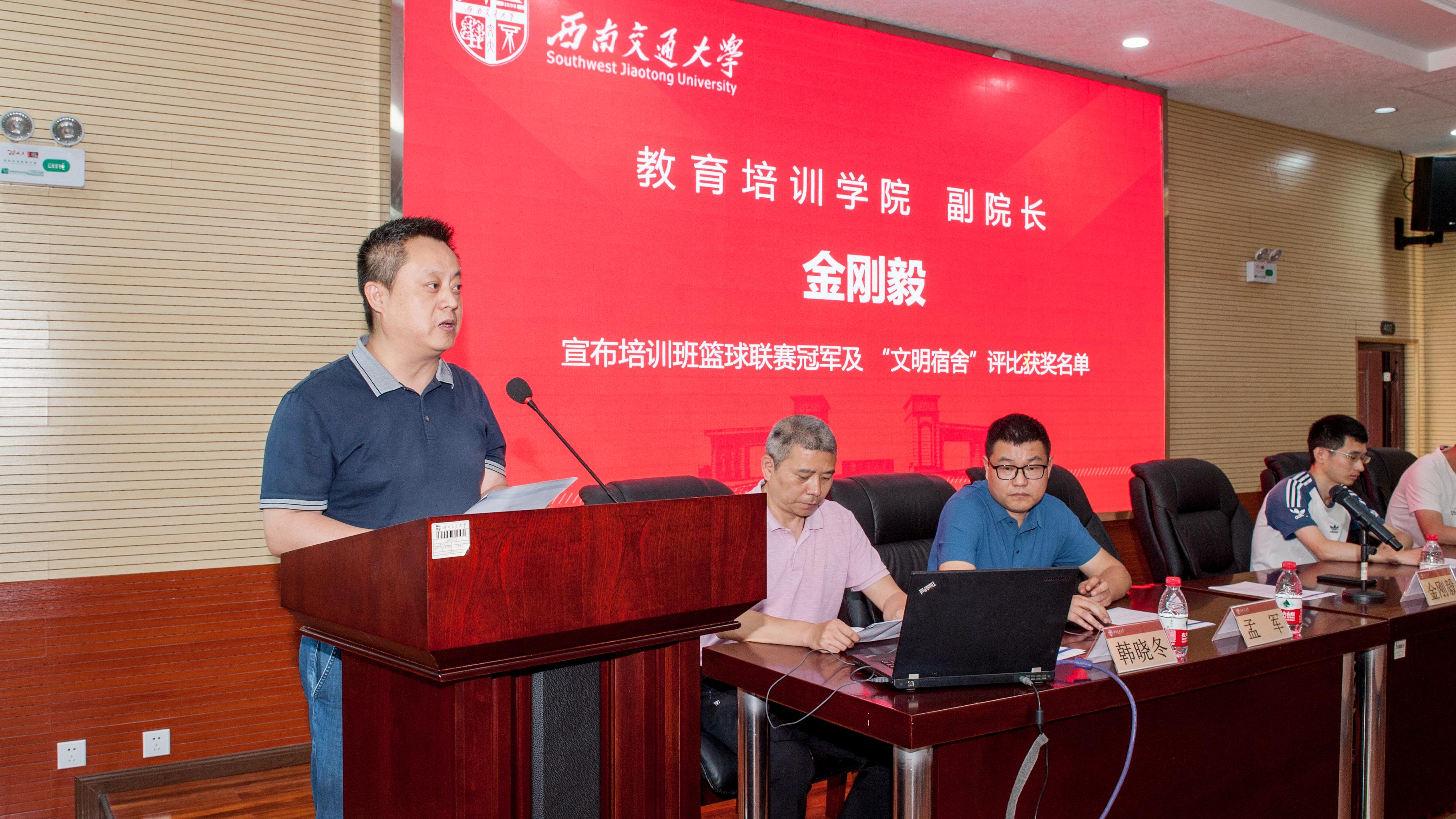 教育培训学院金刚毅副院长宣布了培训班篮球联赛冠军及本学期“文明宿舍”评比获奖名单并为获奖同学颁发了荣誉证书和奖品。