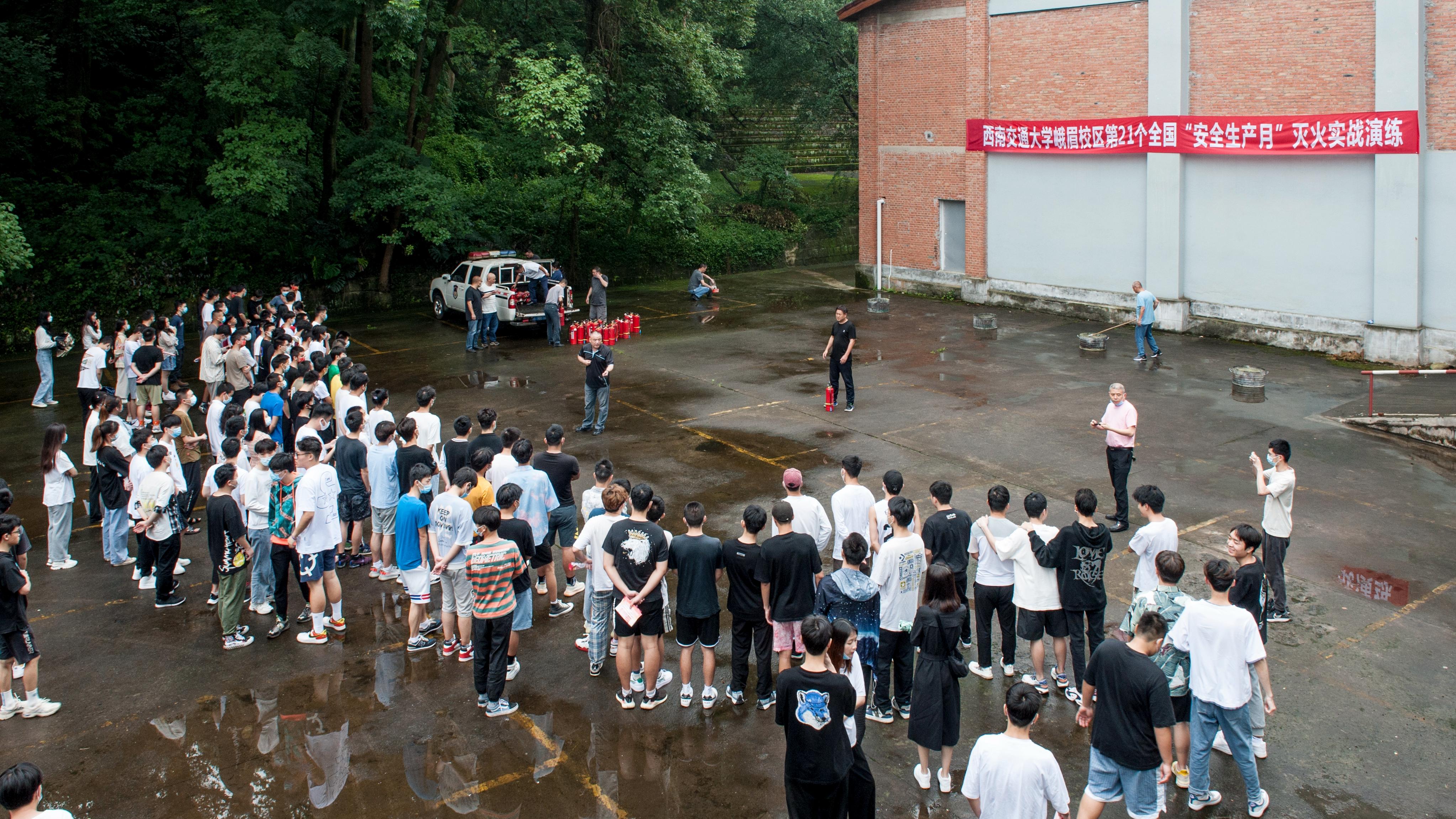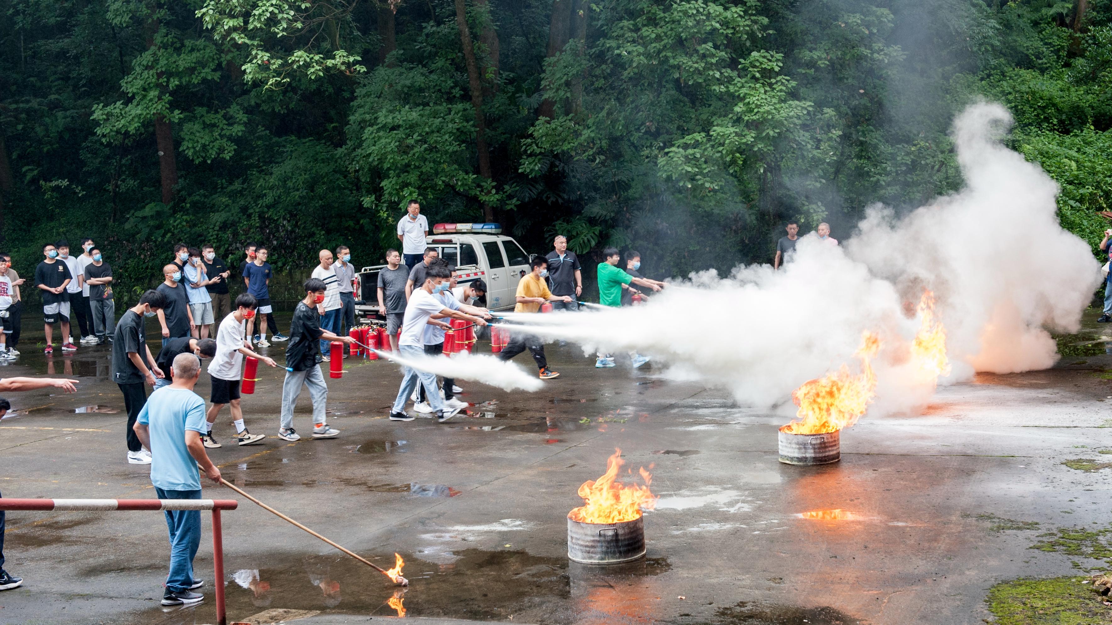 讲座后,后勤保卫办公室保卫科同志指导在峨眉校区培训的宜宾职业技术学院学生进行了现场灭火实战练习。