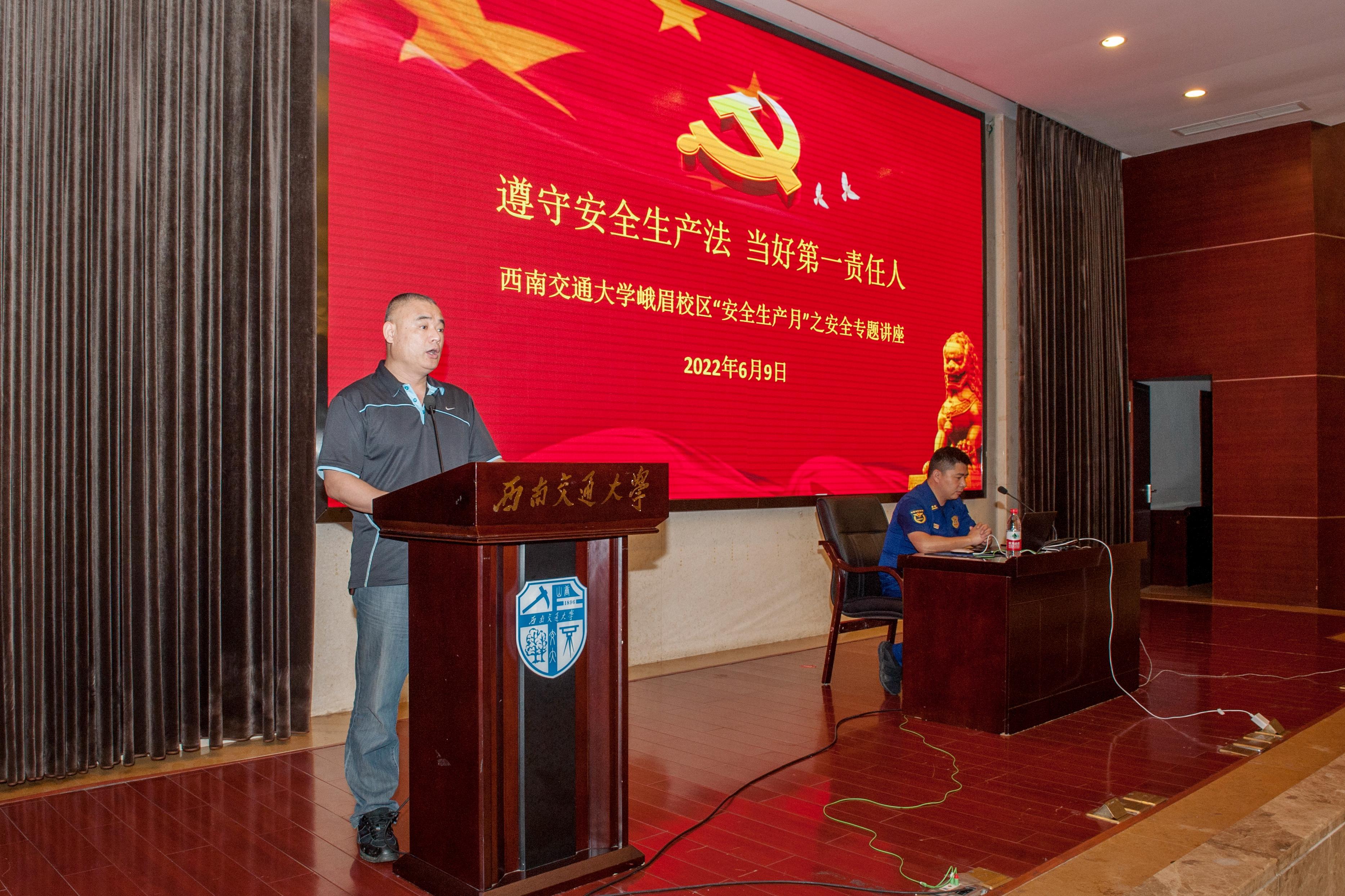 今年6月是全国第21个“安全生产月”,主题是“遵守安全生产法,当好第一责任人”。6月9日上午,校区邀请了峨眉山风景名胜区消防救援大队大队长熊伟为校区师生开展了安全知识专题讲座。讲座由后勤保卫办公室副主任王眉生主持。