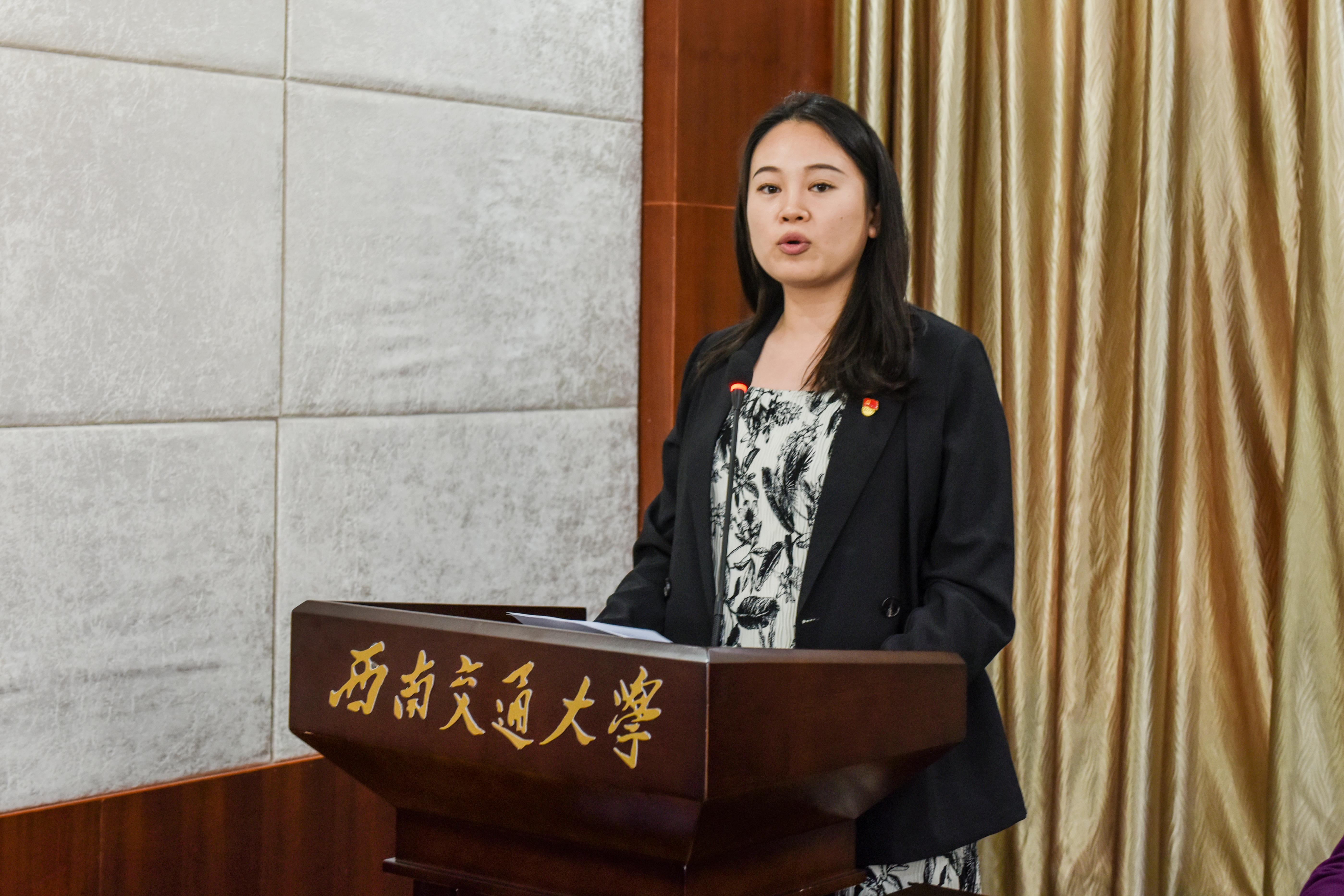 石珮锦代表学员发言。她代表学员向学校党委、党委组织部及党委学生工作部的关心关爱表示衷心感谢,并代表全体学员表态,一定会珍惜这次培训机会,遵守培训纪律,潜心学习,认真研讨,以党的创新理论指导学生工作具体实践,不断提升学生教育管理服务质量,为学校双一流建设汇聚磅礴力量。
