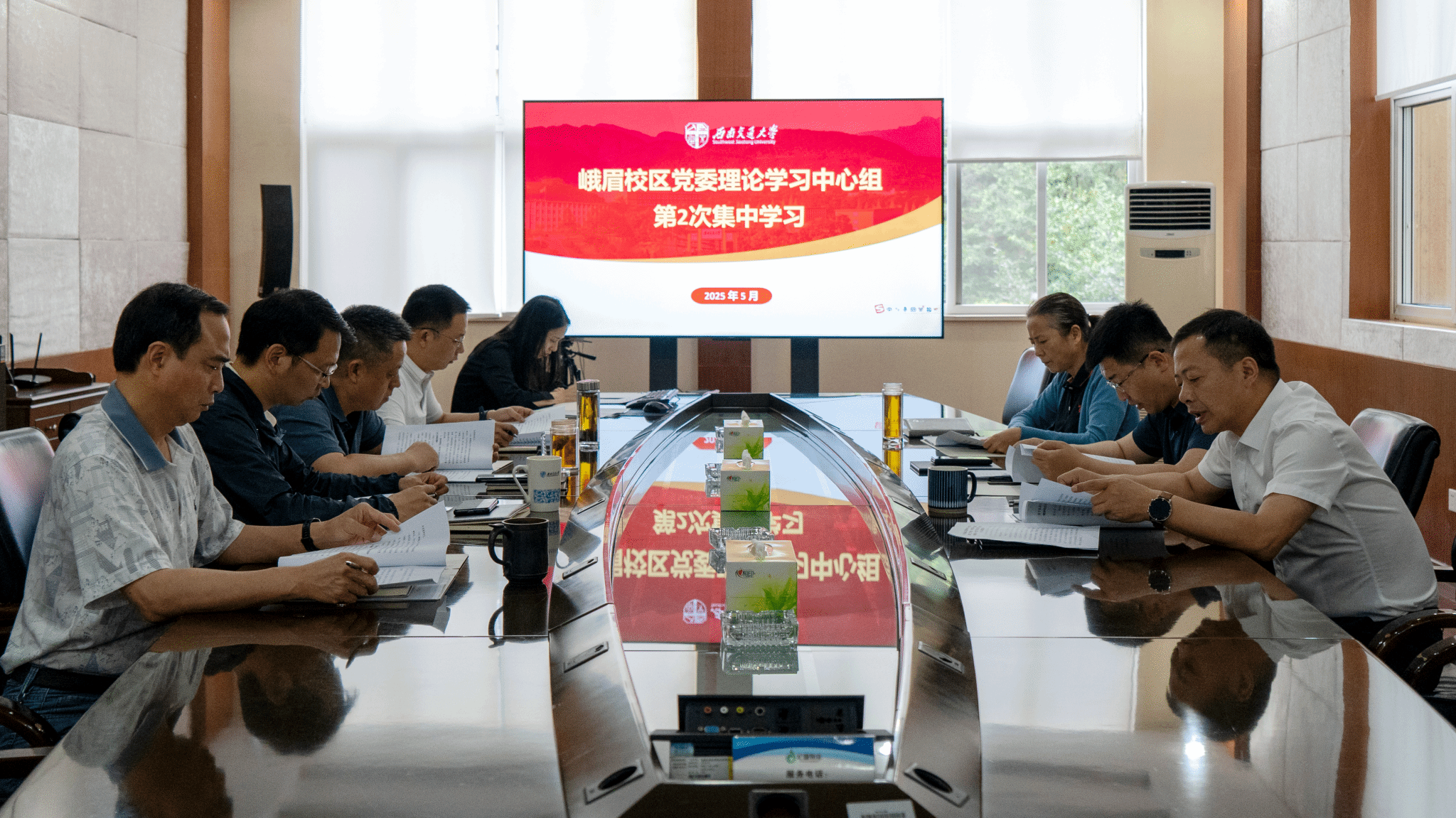 5月15日,峨眉校区领导班子在主楼第四会议室组织开展党委理论学习中心组专题学习活动,深入领会中央八项规定精神的深刻内涵与重要意义。