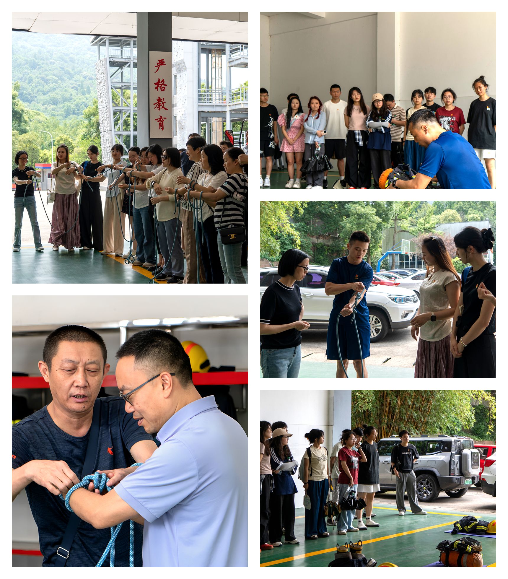 活动伊始,景区消防大队的同志重点讲解了专业救援装备的操作要领。现场展示了卷结、床单连接结、节结等不同场景适用的打结方法,详细拆解了战斗服的多层防护结构,了解空呼参数,并分步骤示范了原地着战斗服的标准化穿戴流程。