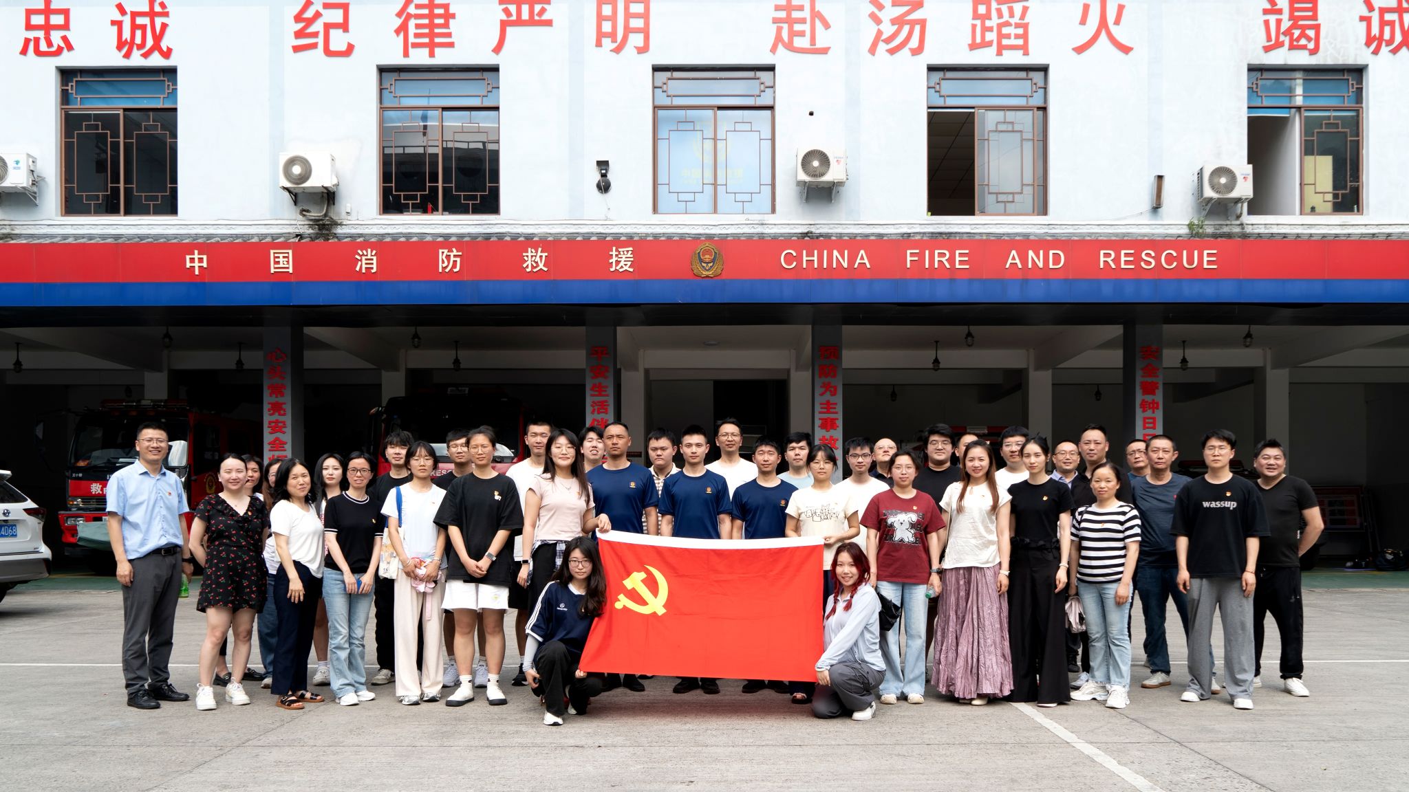 为深入贯彻落实党的二十大精神,强化党建引领作用,提升师生党员的安全意识和应急处置能力,5月22日下午,教工第一、二党支部联合学生第一、二党支部,赴峨眉山市景区消防大队开展“传承消防精神 筑牢安全防线”主题党日活动。