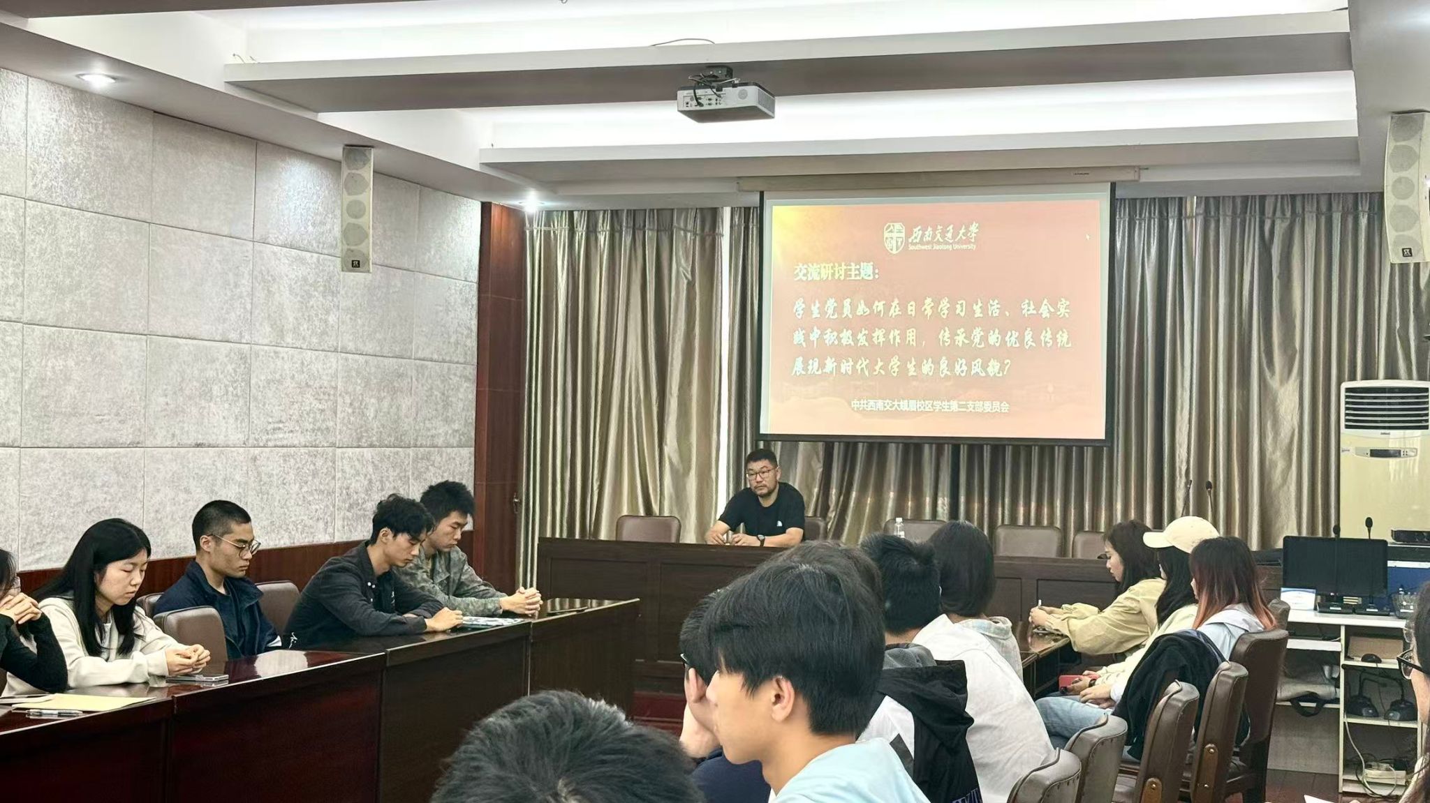 10月16日上午,学生第二党支部在峨眉校区主楼第二会议室开展了10月主题党日活动。本次活动旨在引导学生党员知史爱党、知史爱国,深刻理解中国共产党与中华民族伟大复兴的关系,通过交流研讨、集体观影等多种形式,引导青年党员进一步坚定理想信念,增强向党组织靠拢的思想自觉和行动自觉。
