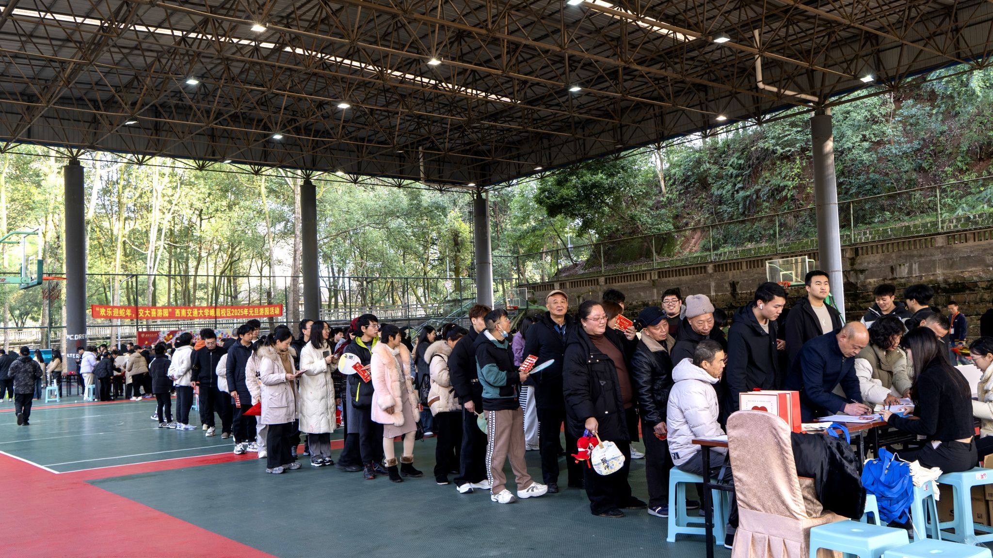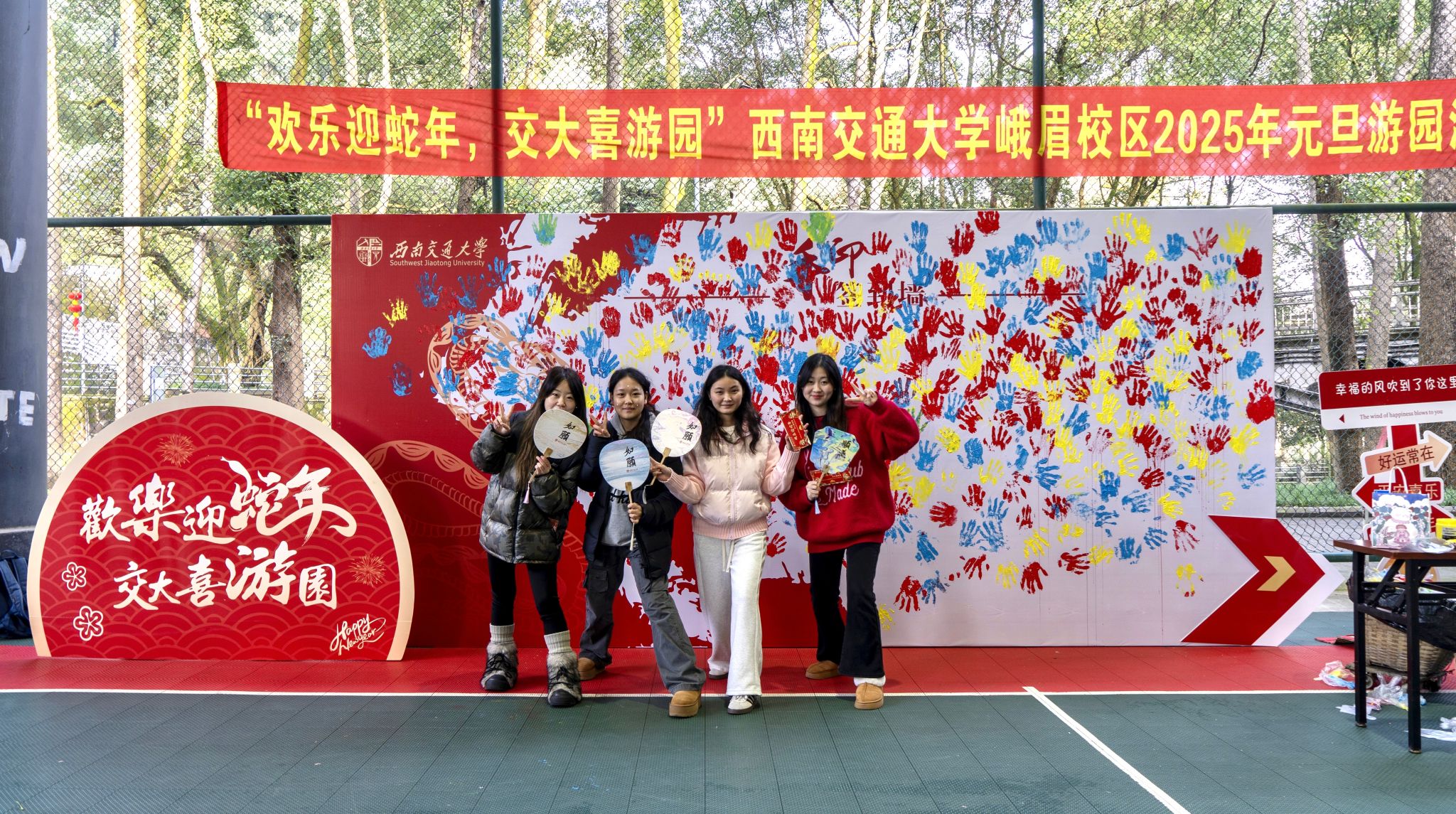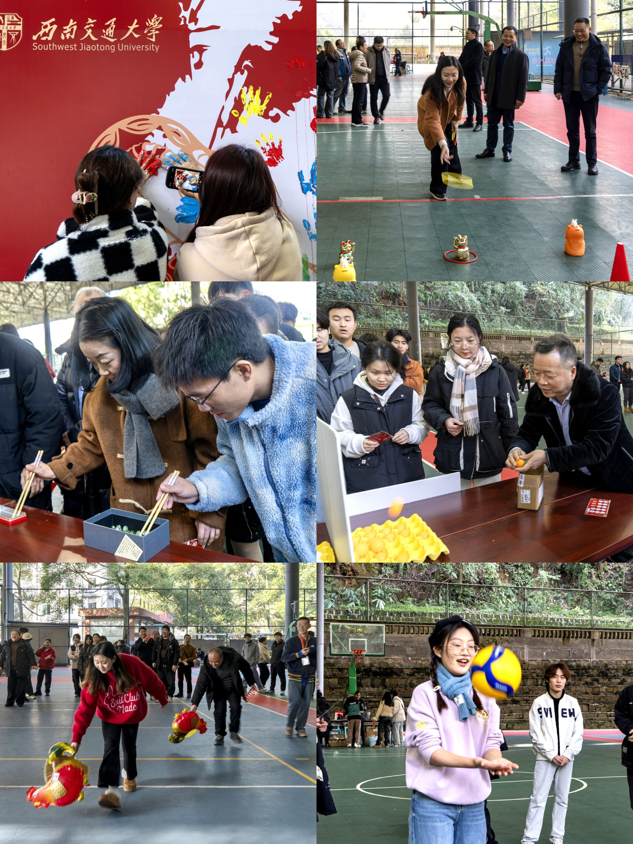 岁序更替,华章日新。12月26日下午,峨眉校区管委会主办,学生管理办公室、校区工会承办的“欢乐迎蛇年,交大喜游园”2025年元旦游园活动在校区风雨棚操场拉开了序幕。校长助理、峨眉校区党工委书记、管委会主任宋新,党工委常务副书记郑简平,常务副主任刘朝晖及相关部门领导,校区全体教职工以及校区学生欢聚一堂,参与丰富多彩的活动,喜迎2025新年的到来。