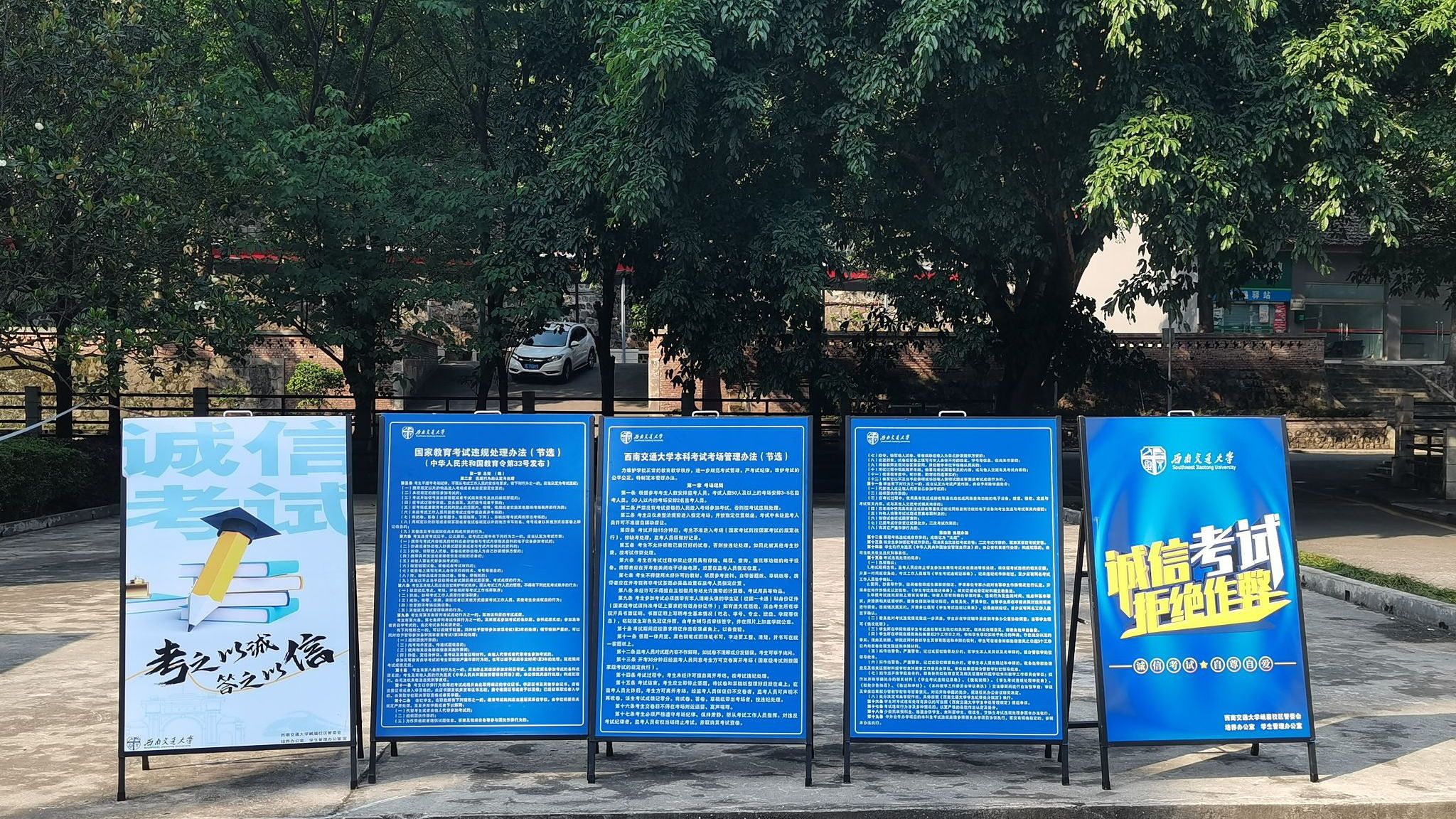 培养办公室在教学楼以及学生宿舍生活区域等重要场所设置主题宣传展板,展示考试纪律要求和警示信息,积极营造诚信考试氛围。