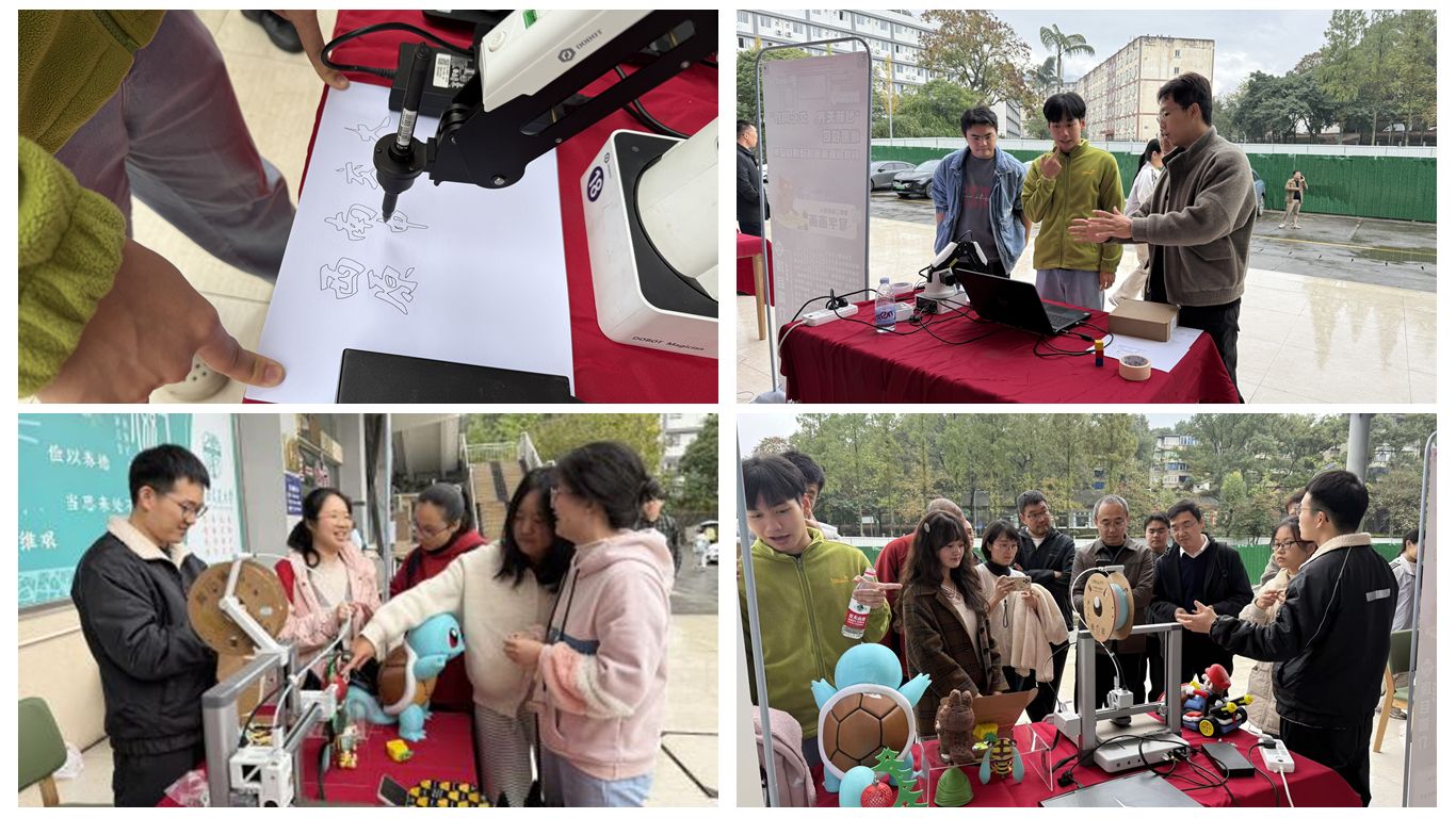 魔方机器人展区,智能机器人以精准迅捷的操作,展现了算法与机械的完美融合;3D打印体验区,教师深入浅出地讲解技术原理,让同学们近距离感受“智造”魅力;智能工业机器人表演区,机械臂灵活挥毫,写下“西南交大”“竢实扬华”等字样,既展示了工业技术的柔性应用,也以独特方式传承了交大精神,赢得阵阵赞叹。