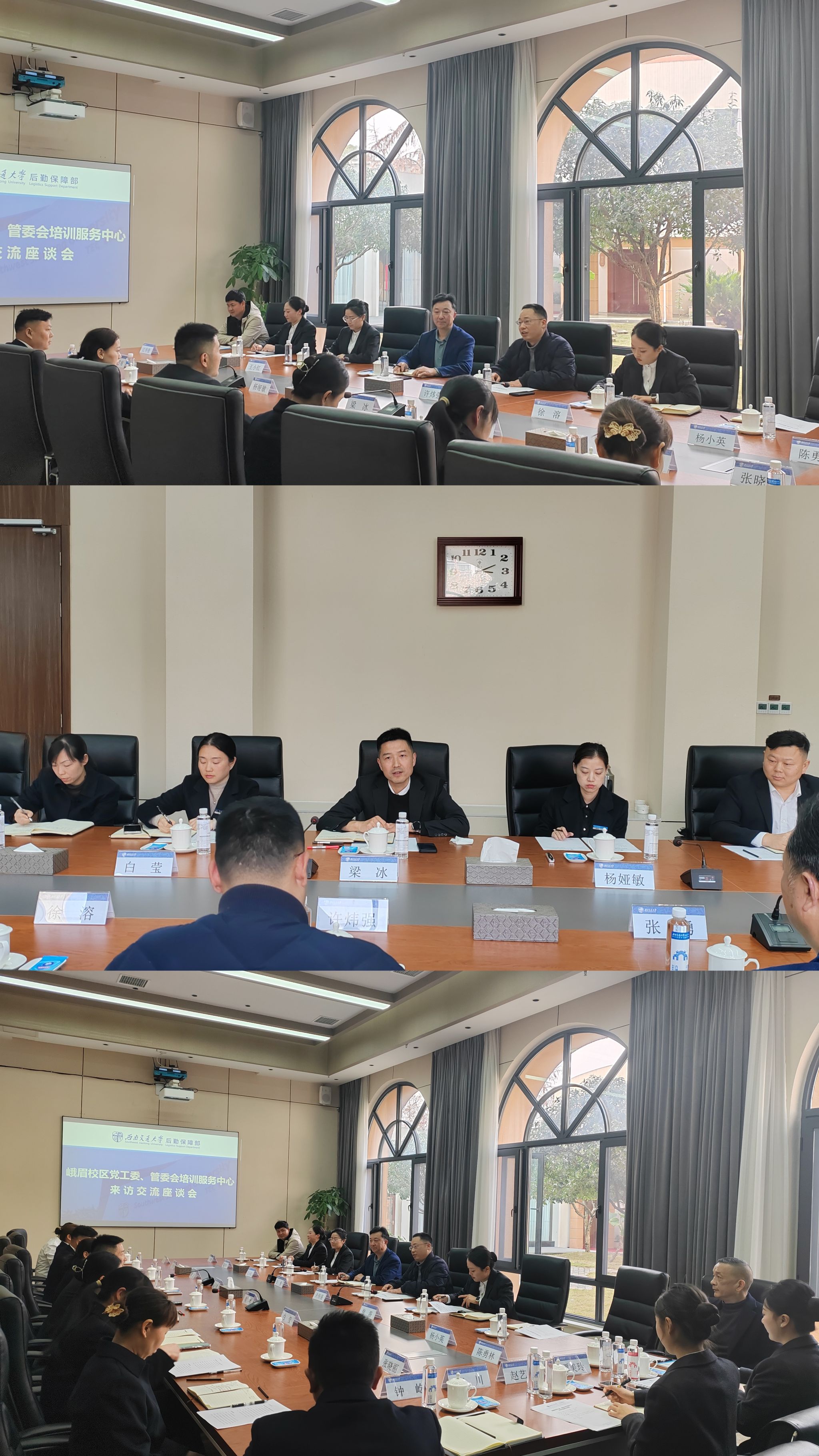 双方在座谈会上进行深度对话,解锁行业真经。后勤保障部副部长梁冰与峨眉校区管委会副主任许炜强分别介绍两个中心整体概况,后勤保障部学术交流与会议服务中心主任杨娅敏介绍学术交流中心现阶段组织架构及运营情况,峨眉校区培训服务中心主任张勇介绍了培训服务中心的基本情况及运营模式。