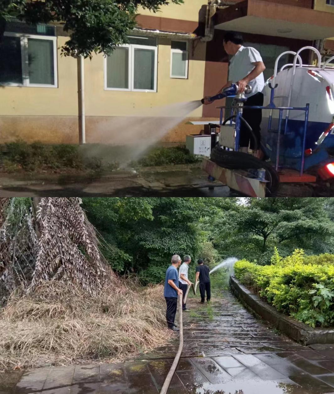 抓好园林植物浇水工作。天气炎热,连日的高温使树木也变得干渴难耐,为了让树木安然度夏,园林工作人员利用洒水车,合理安排浇水时间、浇水量,分别于清晨和傍晚对校区植物进行全面浇水,确保植物的正常生长和绿化景观效果。