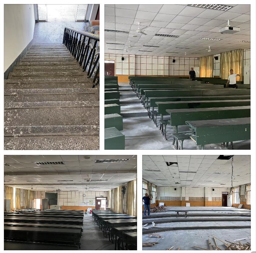 8月的交大峨眉校区,骄阳似火,热浪滚滚。在高温炎热天气下,后勤保卫办公室对校区幼儿园、大板食堂、中山梁培训教室、路南七层点式楼燃气改管以及科技交流中心庭院的相关维修改造工作也是如火如荼的开展,在此期间校区内外工作人员发扬斗酷暑、战高温、迎热浪、不服“暑”的精神!经过一个多月的不懈努力,在八月的尾声终于迎来新学期新面貌。